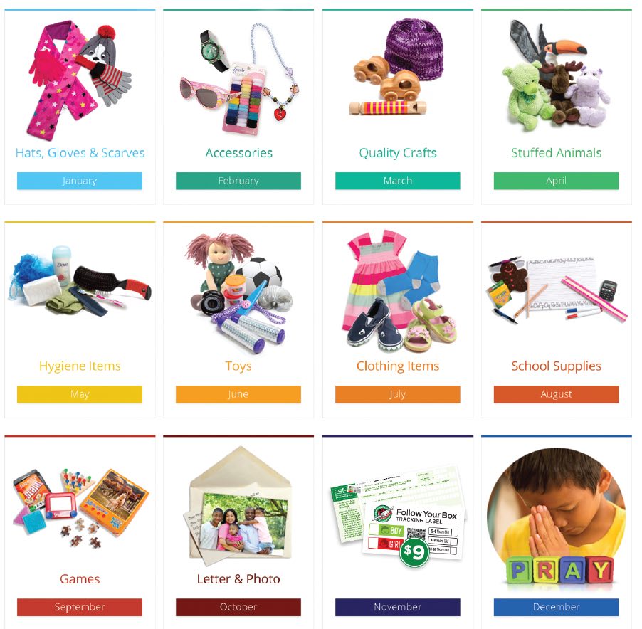 A quality “wow” item is something such as a stuffed animal, soccer ball with pump, or clothing outfit that will capture the child’s attention the instant he or she opens the box.